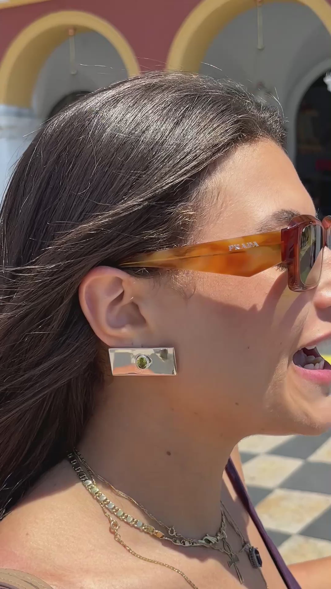 Micha silver rectangle earrings